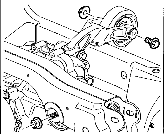 9. Remove rear drive module rear bracket fasteners from frame support.