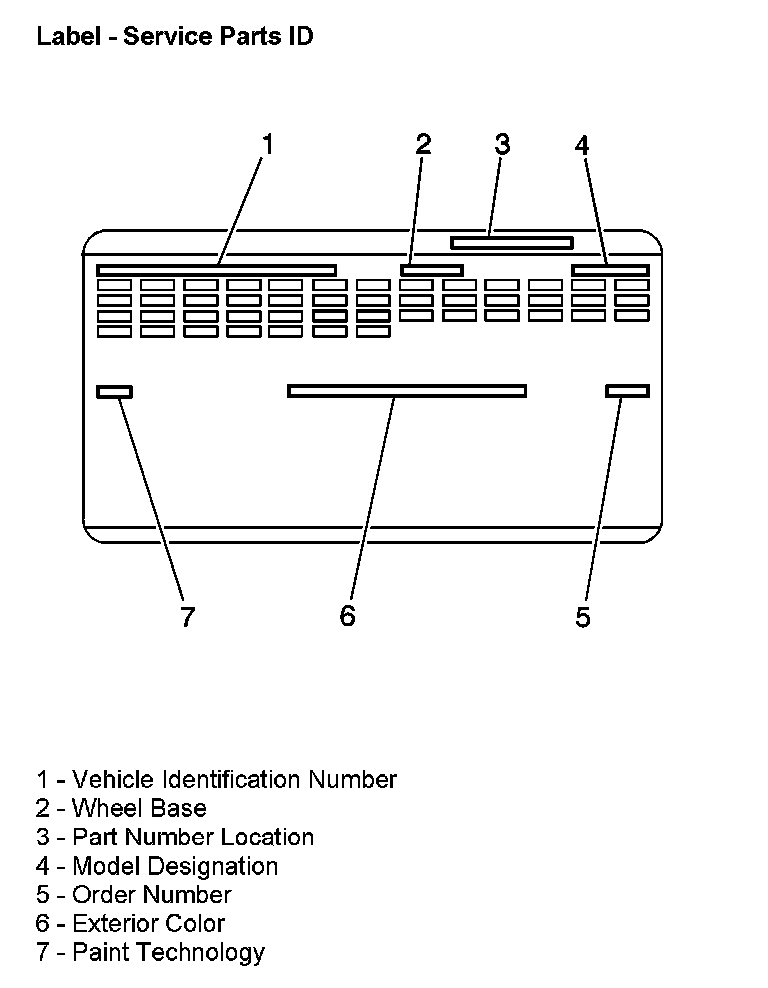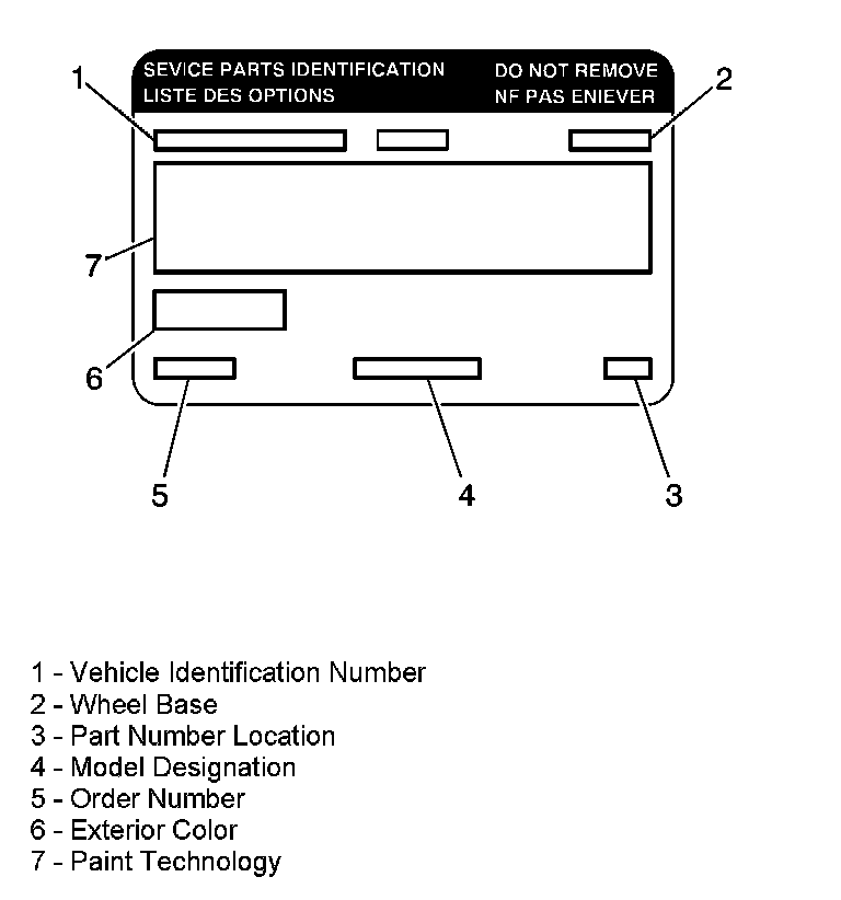 The service parts identification label is placed on the vehicle in order to help the service and parts personnel identify the vehicle's original parts and the vehicle's original options.