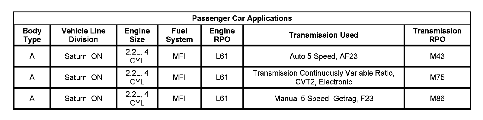 Passenger Car Applications: