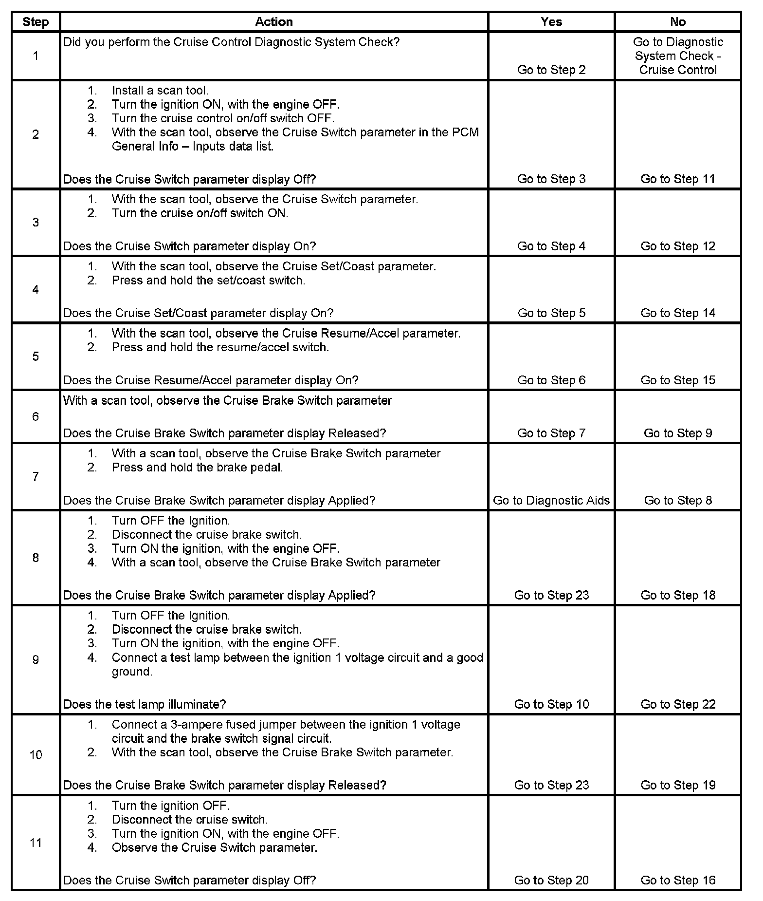 CRUISE CONTROL INOPERATIVE/MALFUNCTIONINGDIAGNOSTIC AIDS
