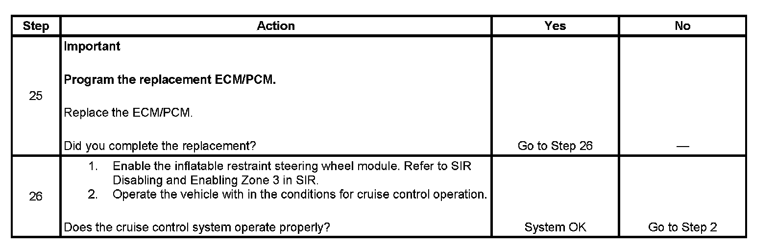Disable the inflatable restraint steering wheel module when performing this diagnostic table. Refer to SIR Disabling and Enabling Zone 3 in Restraint Systems.