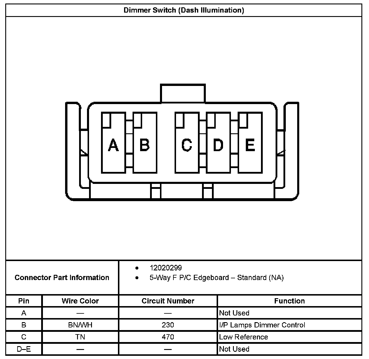 Dimmer Switch (Dash Illumination):