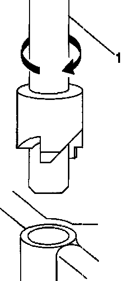 Install the insert until the flange of the insert contacts the counterbored surface. Continue to rotate the installer tool (1) through the insert.