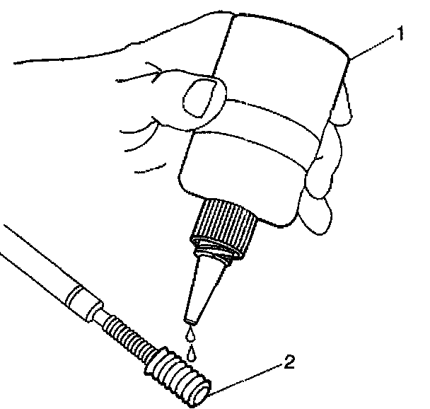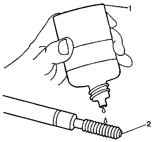 9. Lubricate the threads of the installer tool (2) with the driver oil (1).