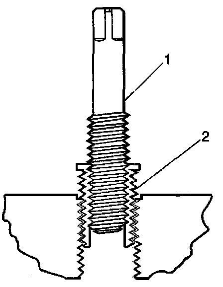 11. Apply threadlock LOCTITE(tm) 277, J 42385-109 (1), or equivalent to the insert OD threads (2).