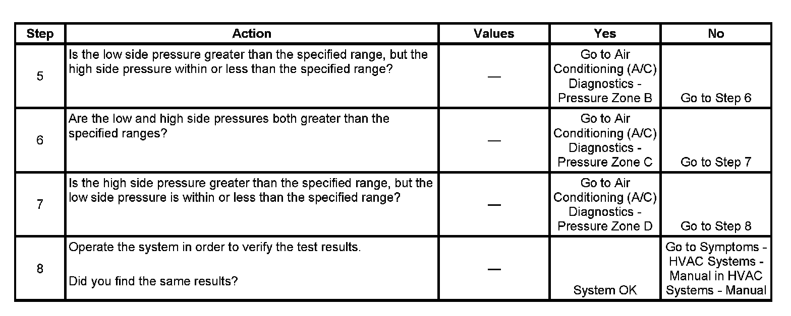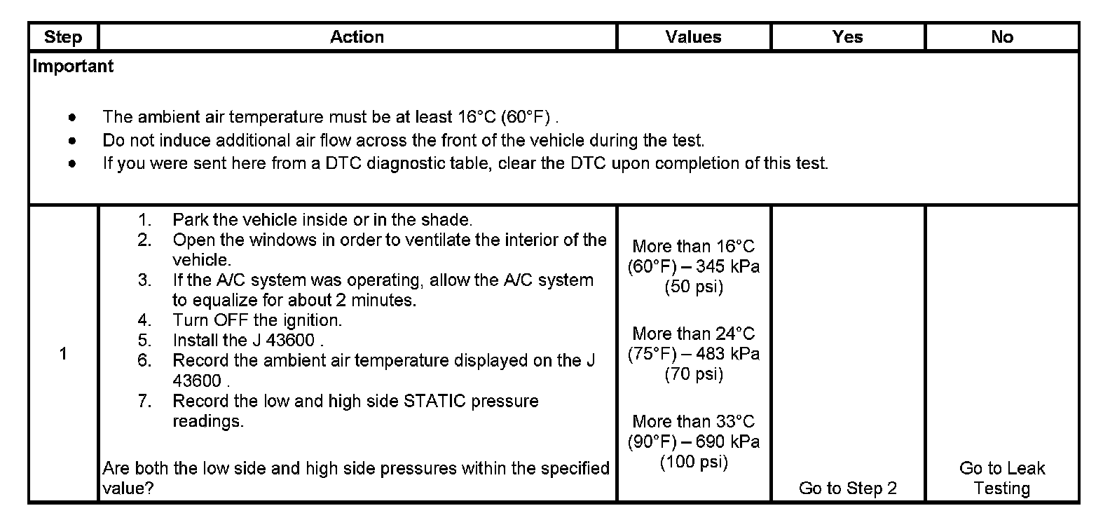 1. This step determines if the A/C system has at least the minimum refrigerant charge required to operate the system without damage.