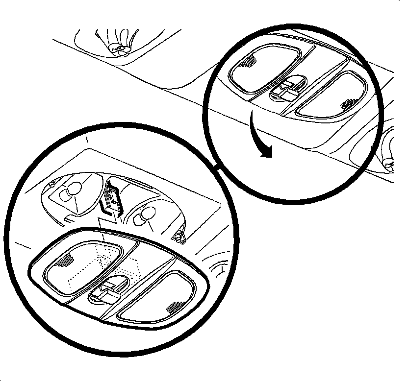 6. Rotate the front reading lamp cover forward into the lamp assembly. Snap the cover into place.