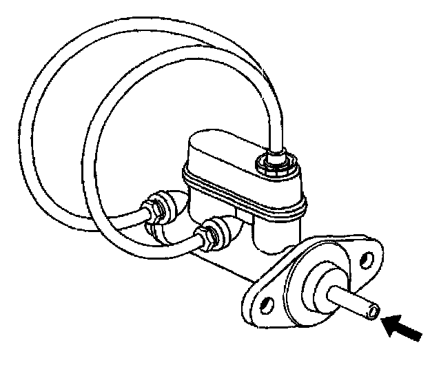 7. Using a smooth, round-ended tool, depress and release the primary piston as far as it will travel, a depth of about 25 mm (1 inch), several times. Observe the flow of fluid coming from the ports.