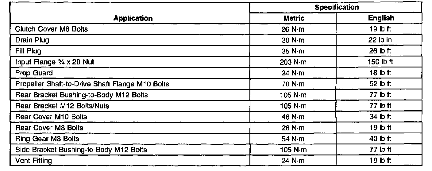 Fastener Tightening Specifications:
