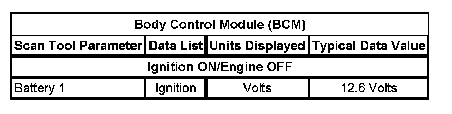 Scan Tool Data List - Body Control Module (BCM):