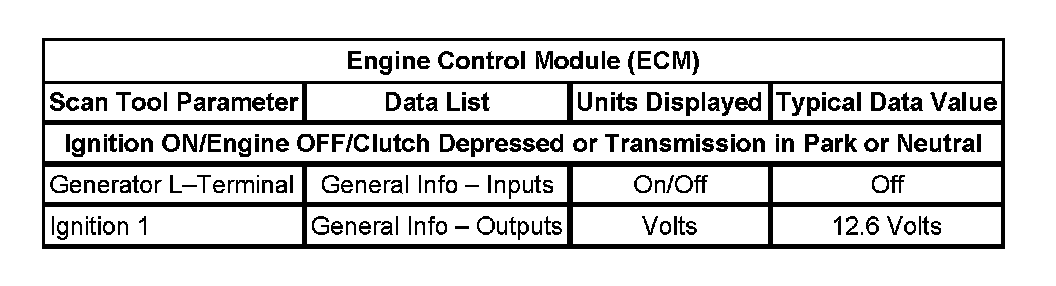 Scan Tool Data List - Engine Control Module (ECM):