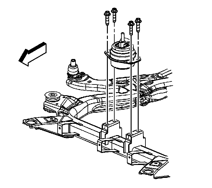 7. Remove the front transmission mount-to-frame bolts.