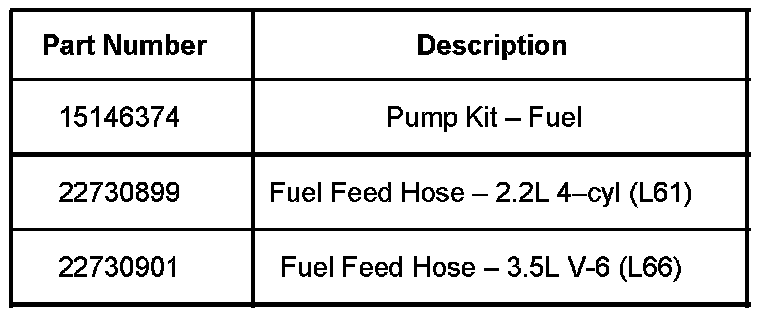 - If vehicle was built up to and including VIN breakpoint 4S802436, fuel feed hose must also be replaced. Use P/N 22730899 for vehicles with 2.2L 4-cyl. (L61) engine or P/N 22730901 for vehicles with 3.5L V-6 (L66) engine.