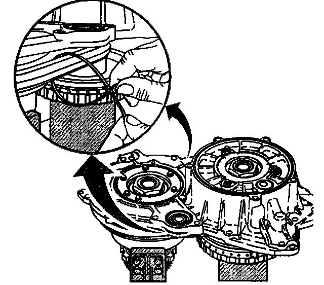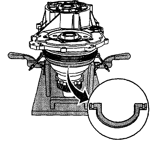 9. Position the U-shaped ring of the J 44337 on the driven pulley assembly.