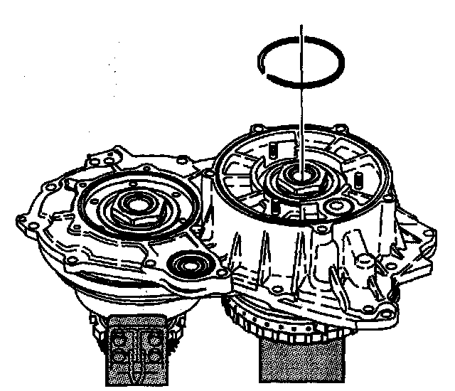 8. Remove the retaining ring for the drive pulley bearing.