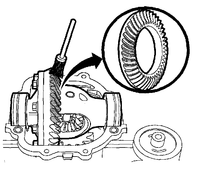 1. Apply the pattern inspection chemical Saturn P/N 1052351 to all of the teeth of the ring gear.