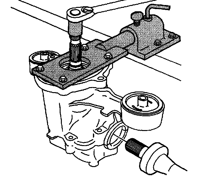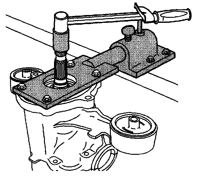 12. Use J 44865 and a breaker bar over the pinion shaft.