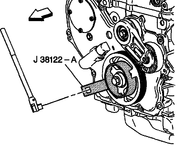 1. Remove the flywheel attaching bolt. Use the J 38122-A to prevent crankshaft rotation.