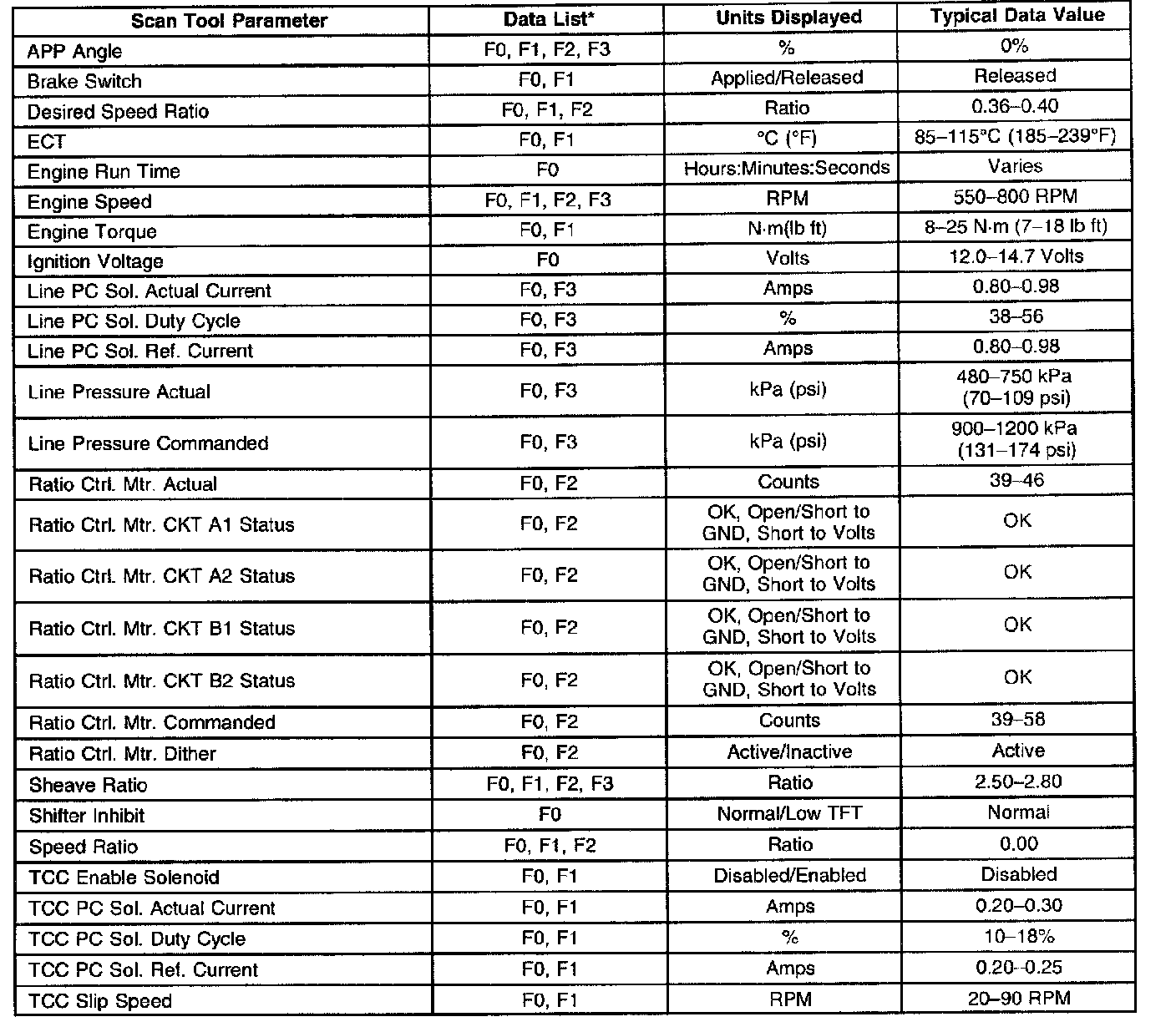 Transmission Scan Tool Data List