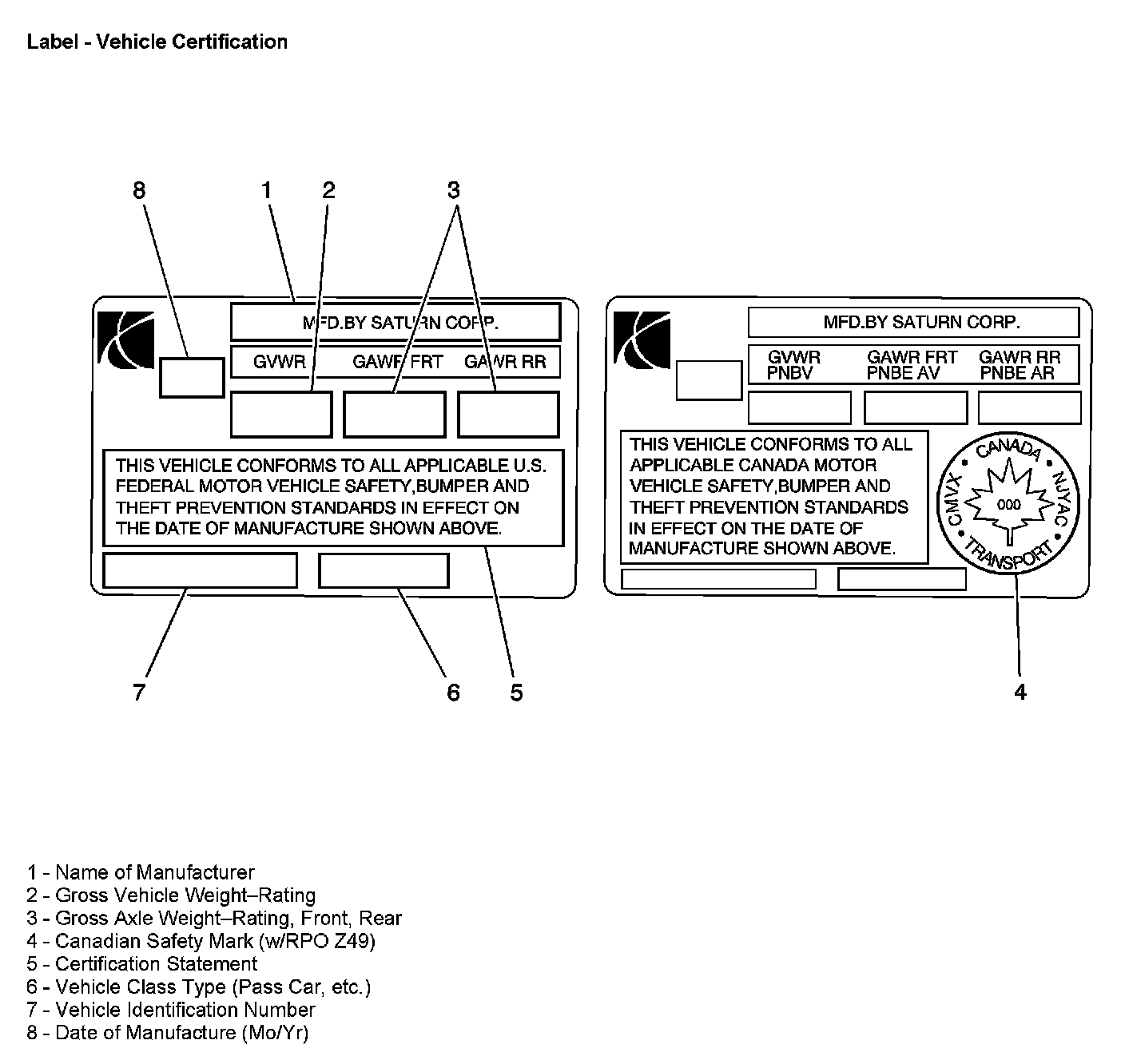 LABEL - VEHICLE CERTIFICATIONLabel - Vehicle Certification: