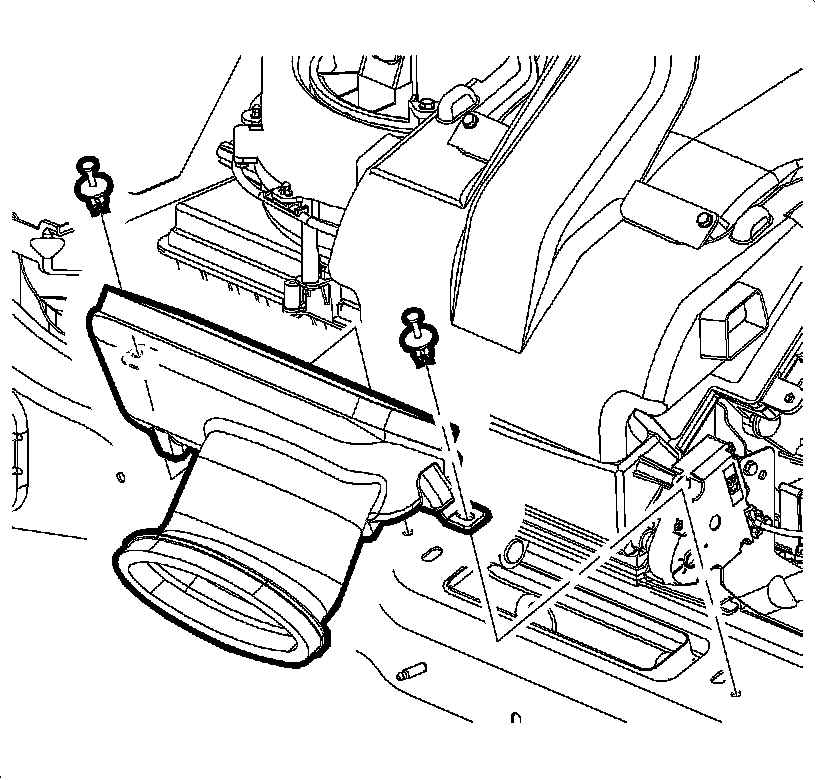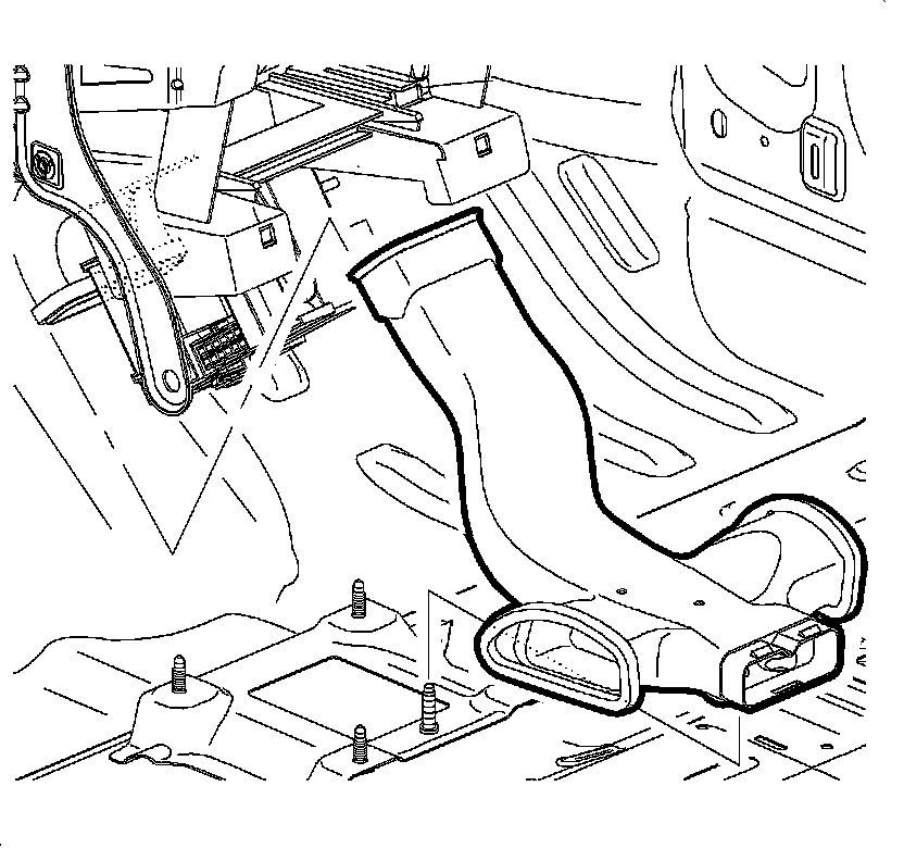 21. Remove the center floor air outlet duct by sliding the duct forward then up at the rear.
