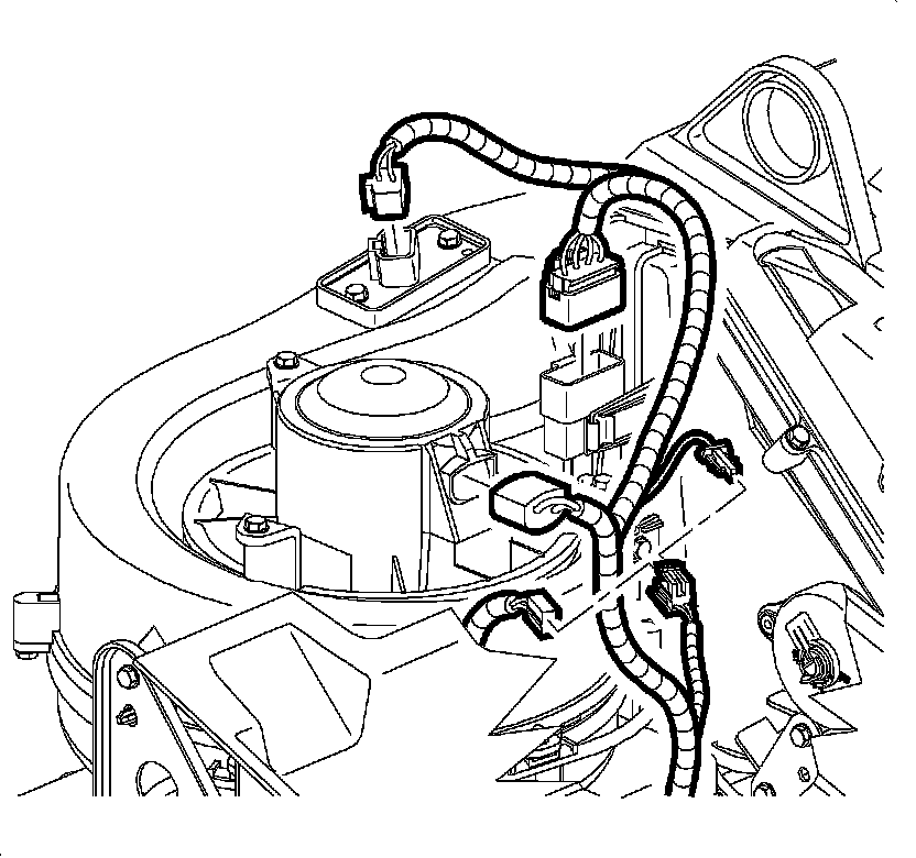 24. Disconnect the blower motor electrical connector from the I/P wire harness.