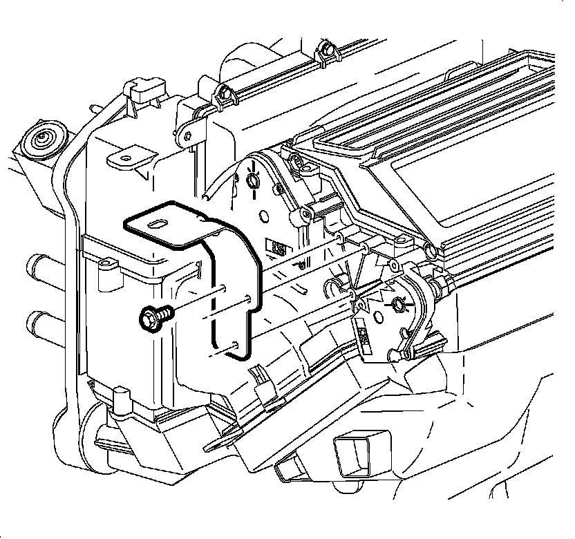 5. Install the metal bracket bolts to the left side of the HVAC module.