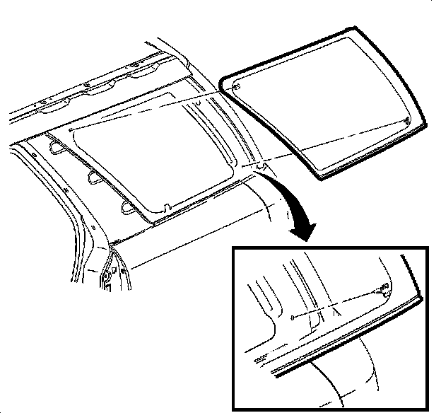 4. Install the roof rear panel assembly. Refer to Panel Applique Replacement - Roof Rear () in Exterior Trim.