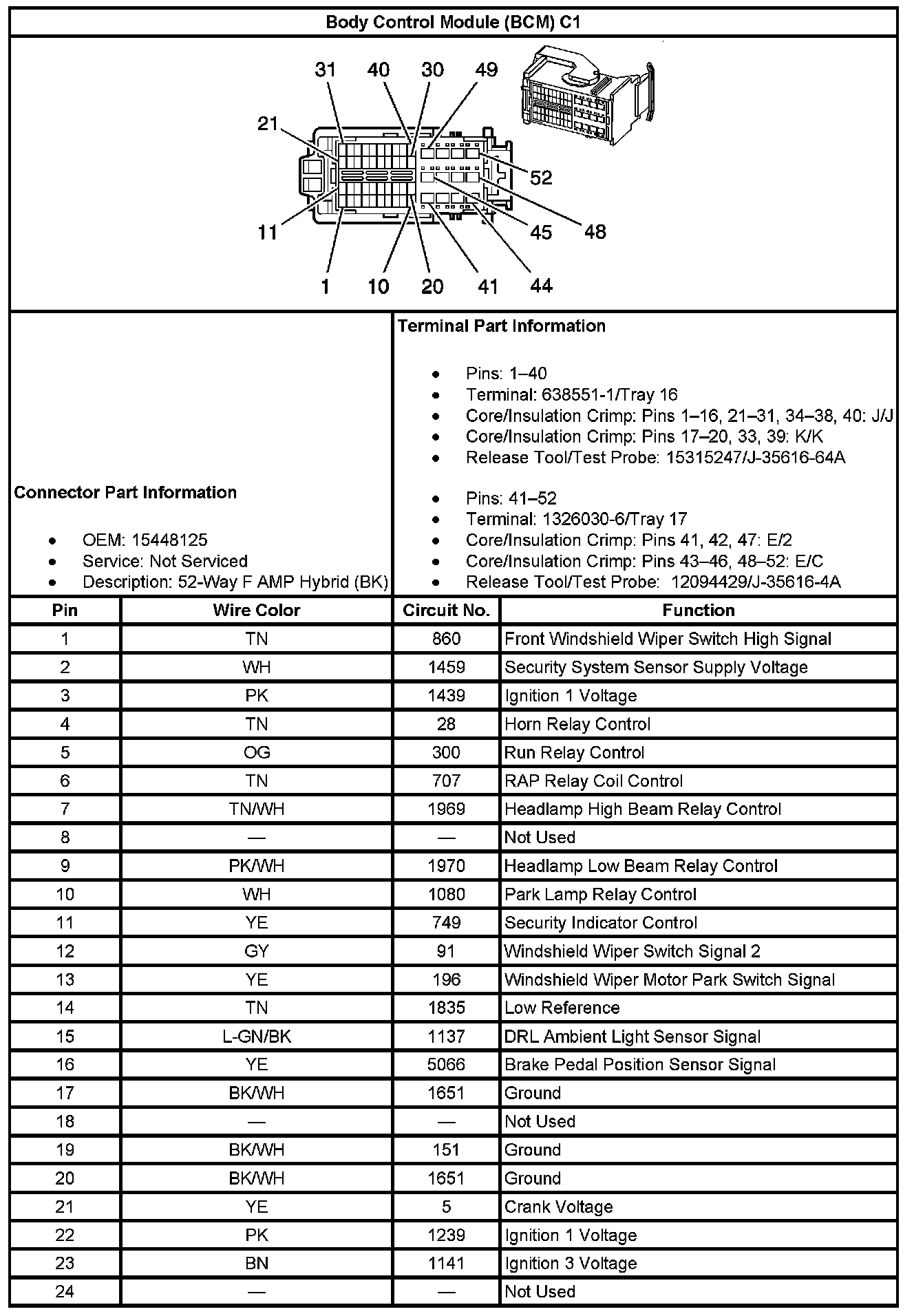 Body Control Module (BCM) C1 (Part 1):