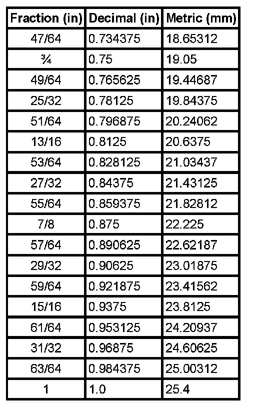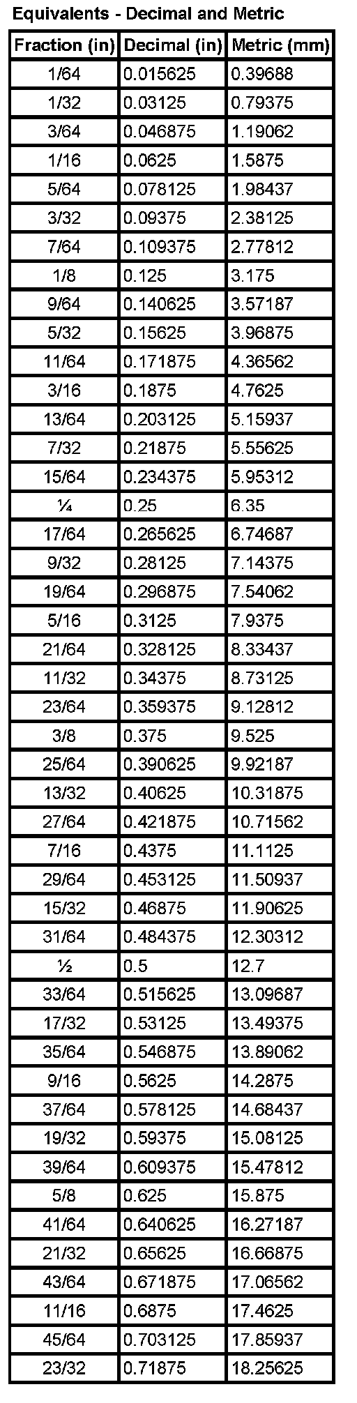 Equivalents - Decimal And Metric