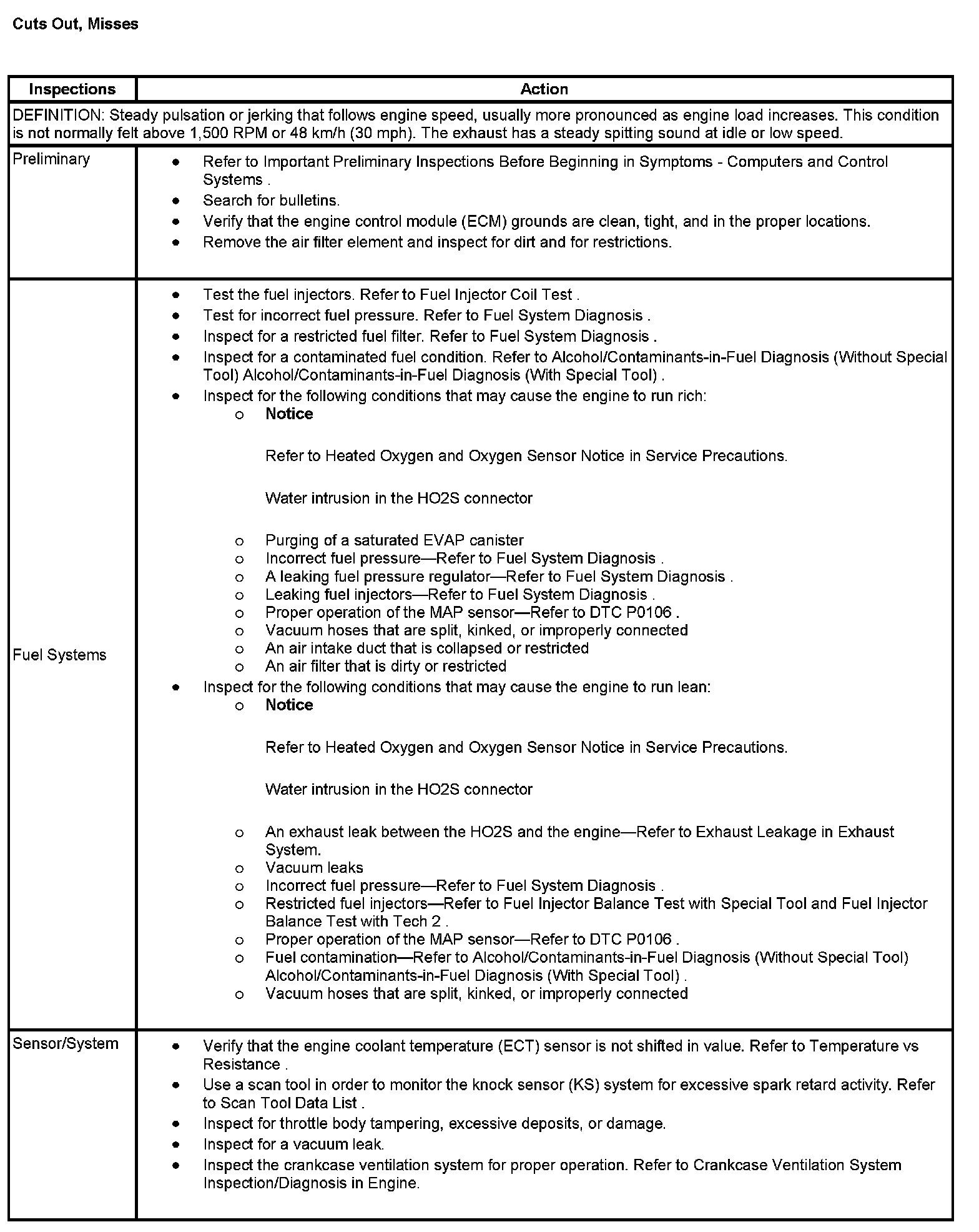 Cuts Out, Misses