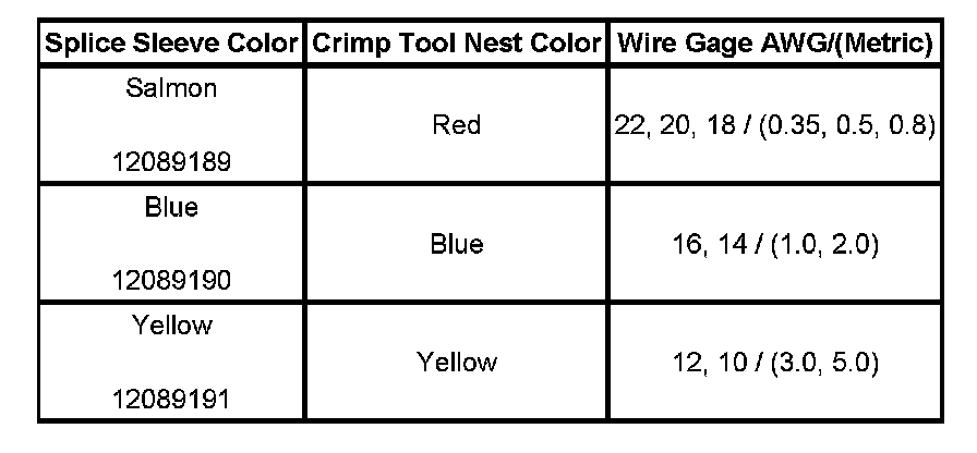 5. Select the proper duraseal splice sleeve according to the wire size. Refer to the table provided.