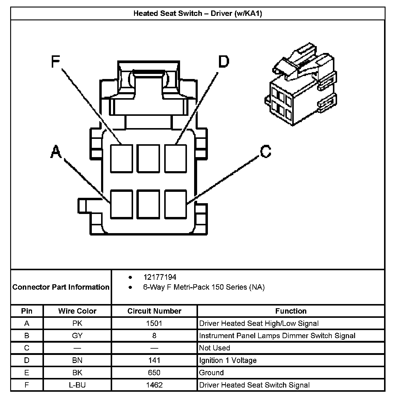 Heated Seat Switch - Driver (With RPO Code KA1):