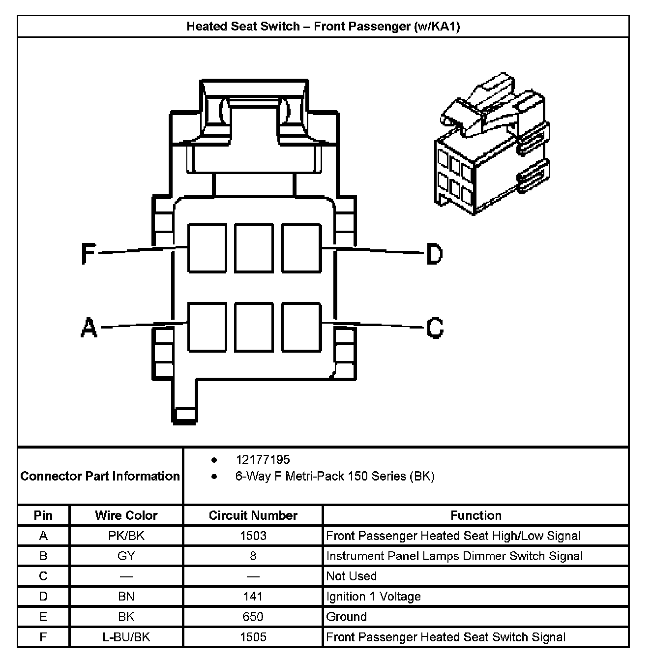 Heated Seat Switch - Front Passenger (With RPO Code KA1):