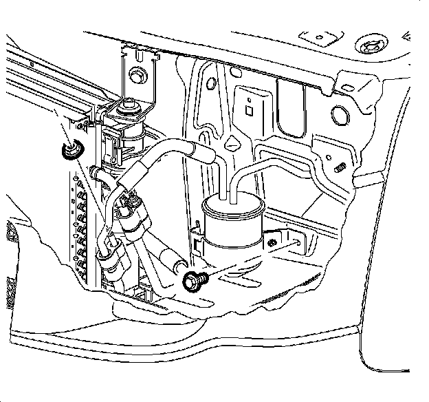 5. Remove the receiver dehydrator bracket bolt from the vehicle.