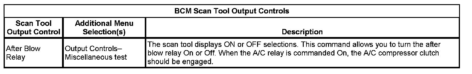 BCM Scan Tool Output Controls: