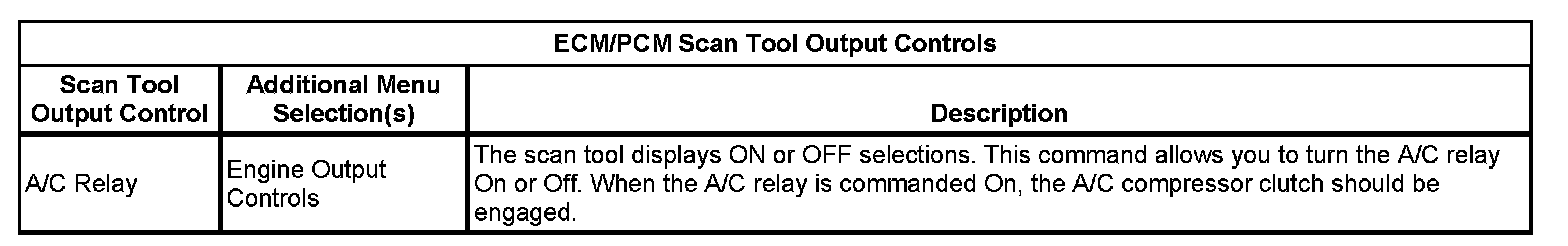 ECM/PCM Scan Tool Output Controls: