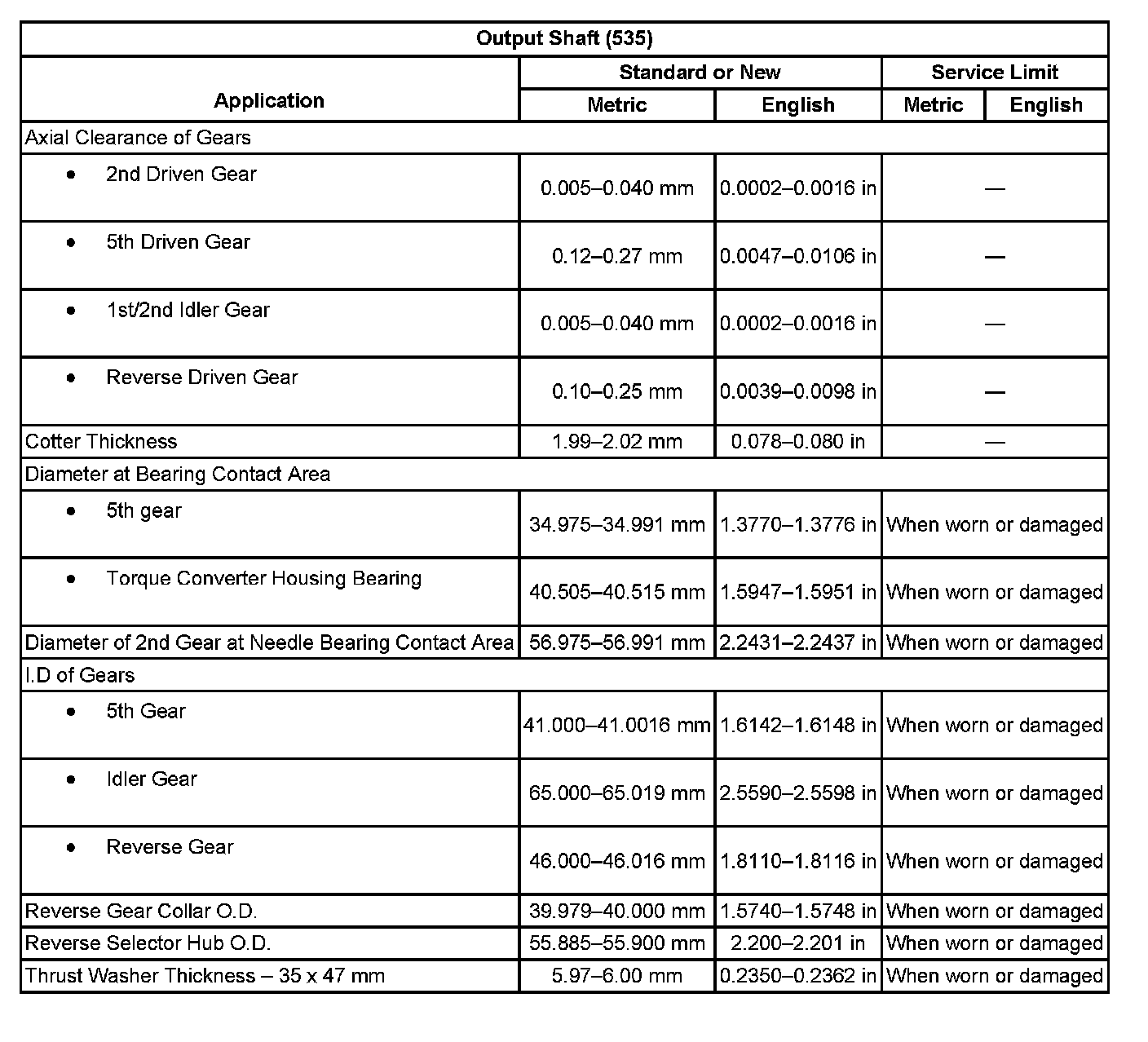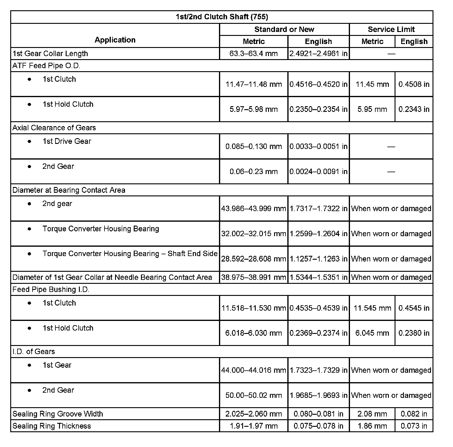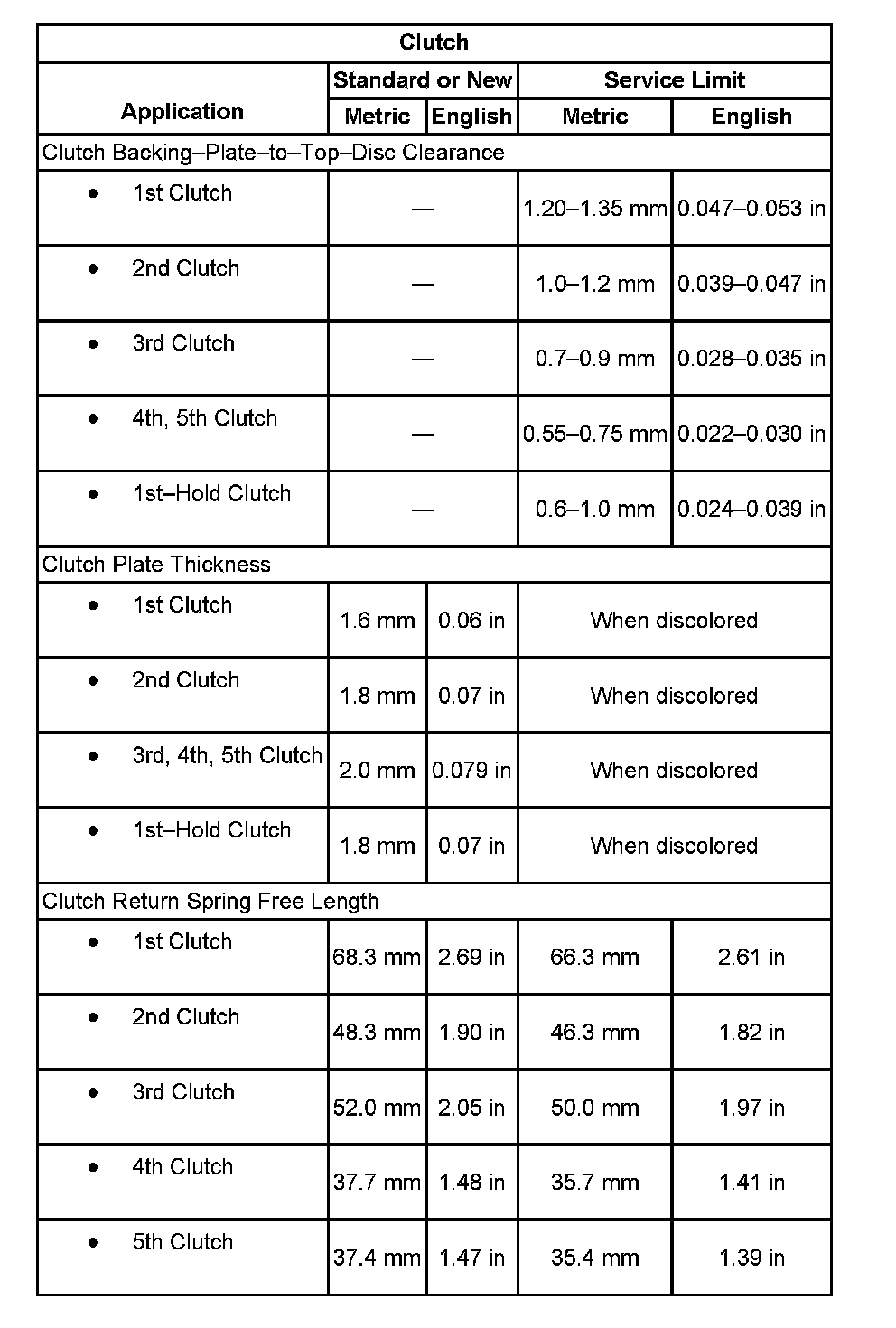 Transmission Clearance SpecificationsClutch