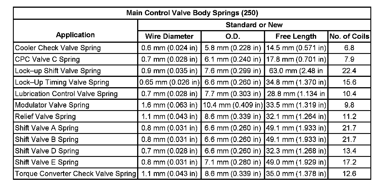 Main Control Valve Body Springs (250)