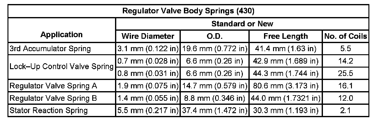 Regulator Valve Body Springs (430)