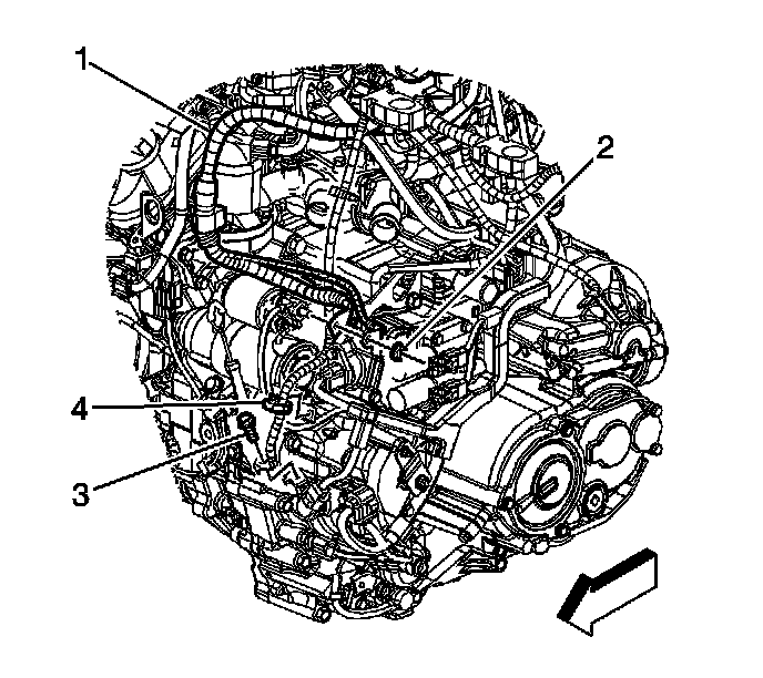 3. Connect the positive battery cable to the starter (2).