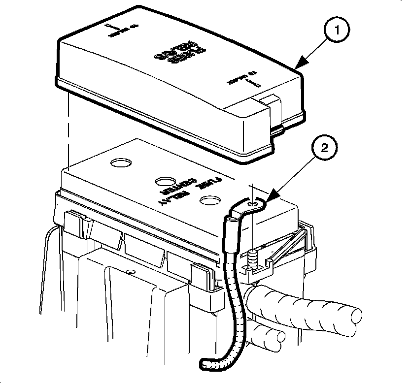 4. Disconnect the positive battery cable (2) from the UHJB.