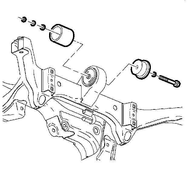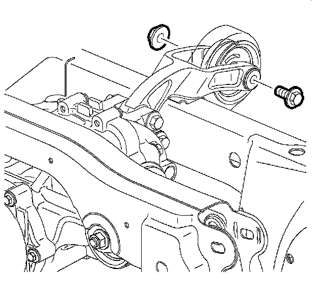 4. Remove the rear drive module bracket to support bolt and nut. Discard the nut.