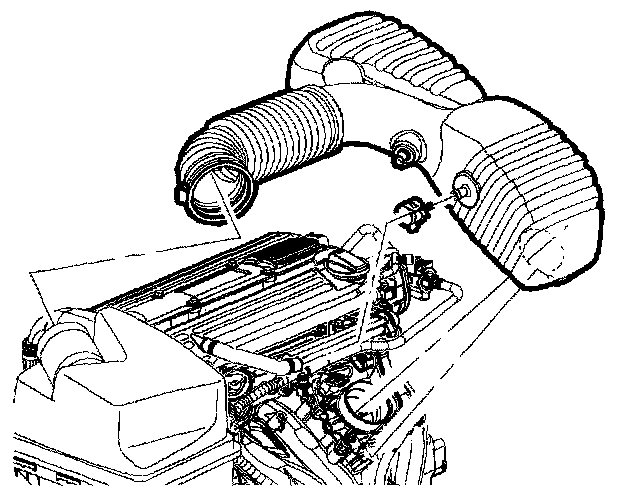 5. Disconnect the PCV fresh air vent hose at the outlet duct assembly.