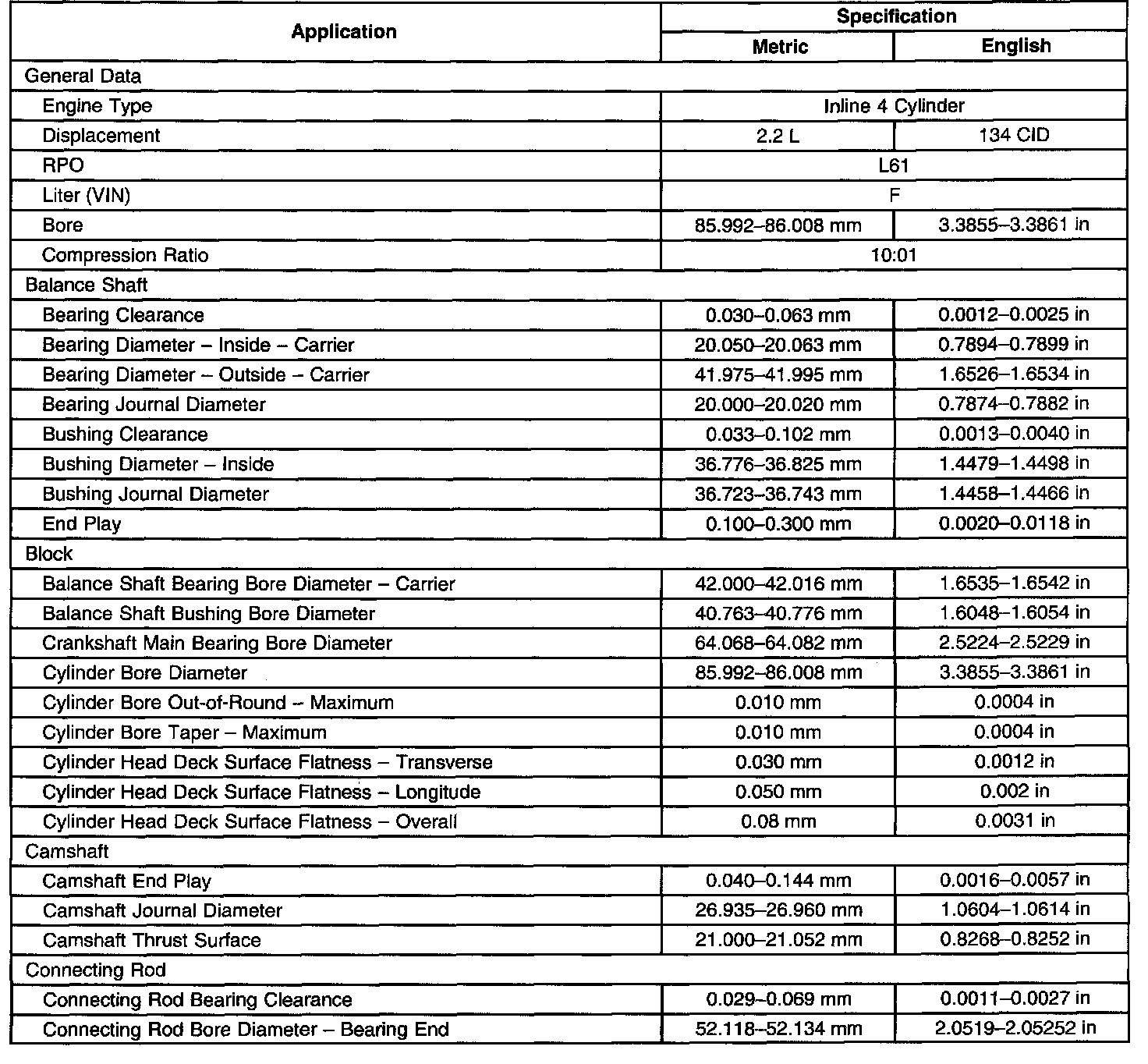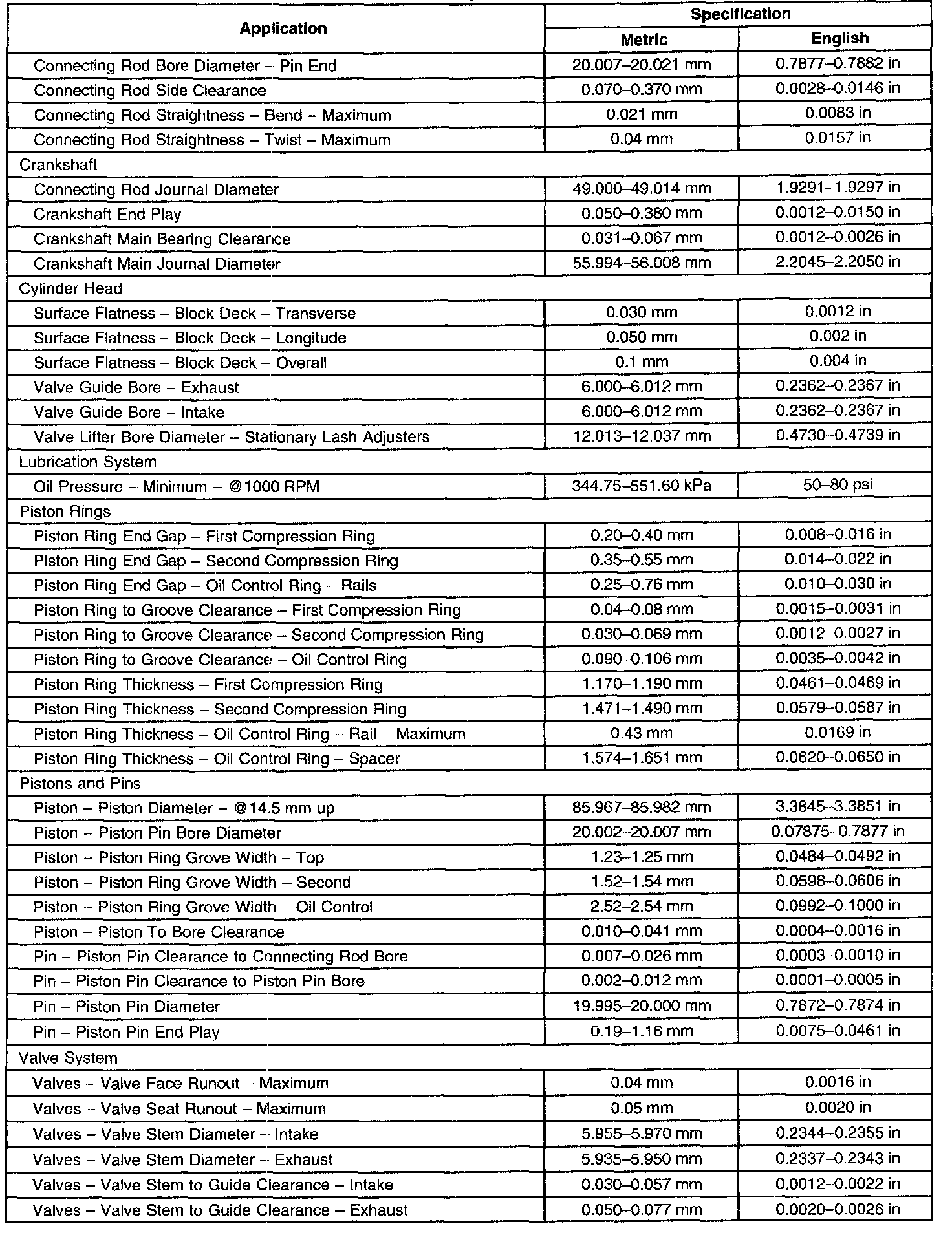 Engine Mechanical Specifications