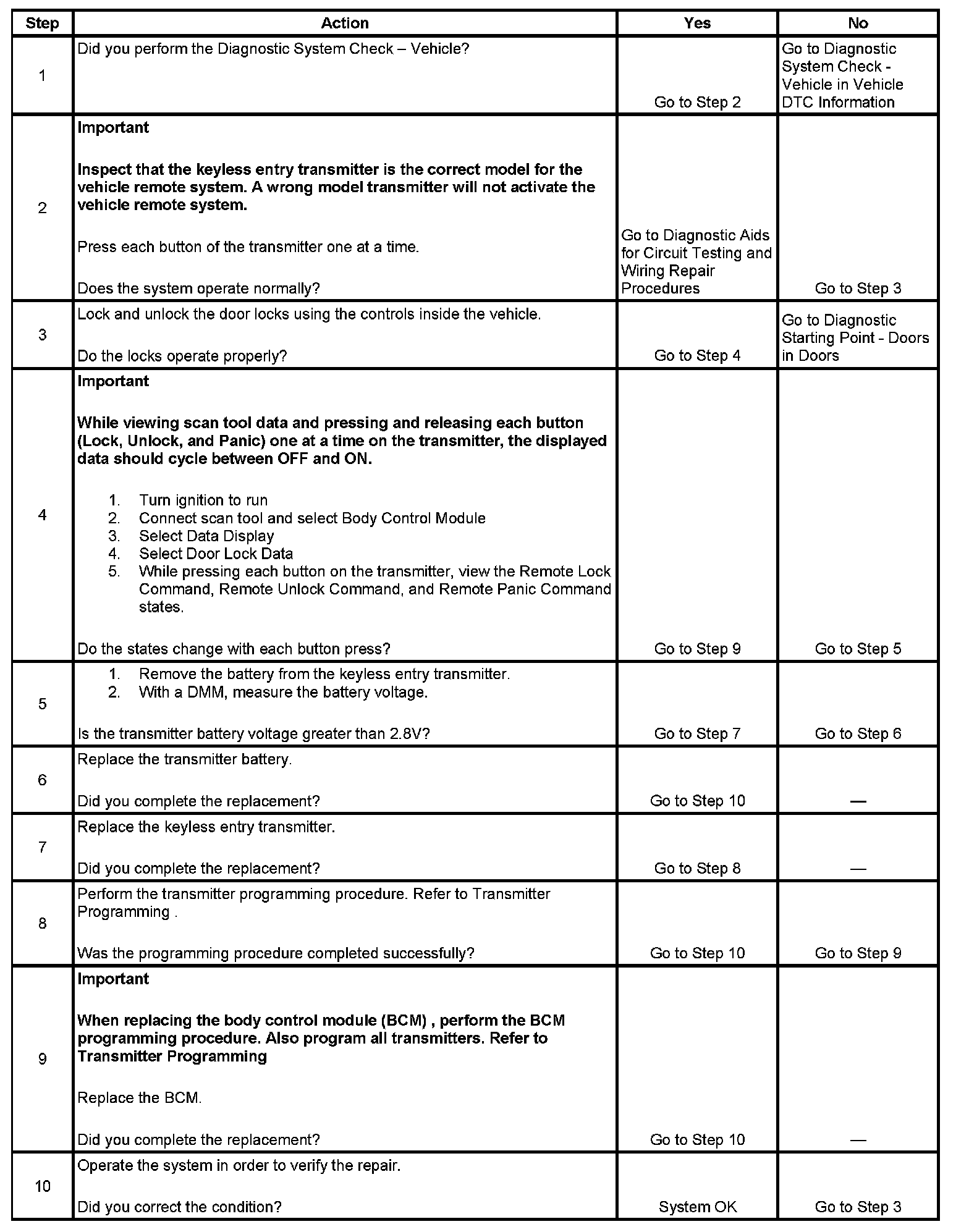 Keyless Entry System Inoperative