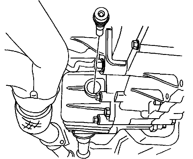 6. Remove the transfer case check plug and fill the transfer case with the specified synthetic gear oil.