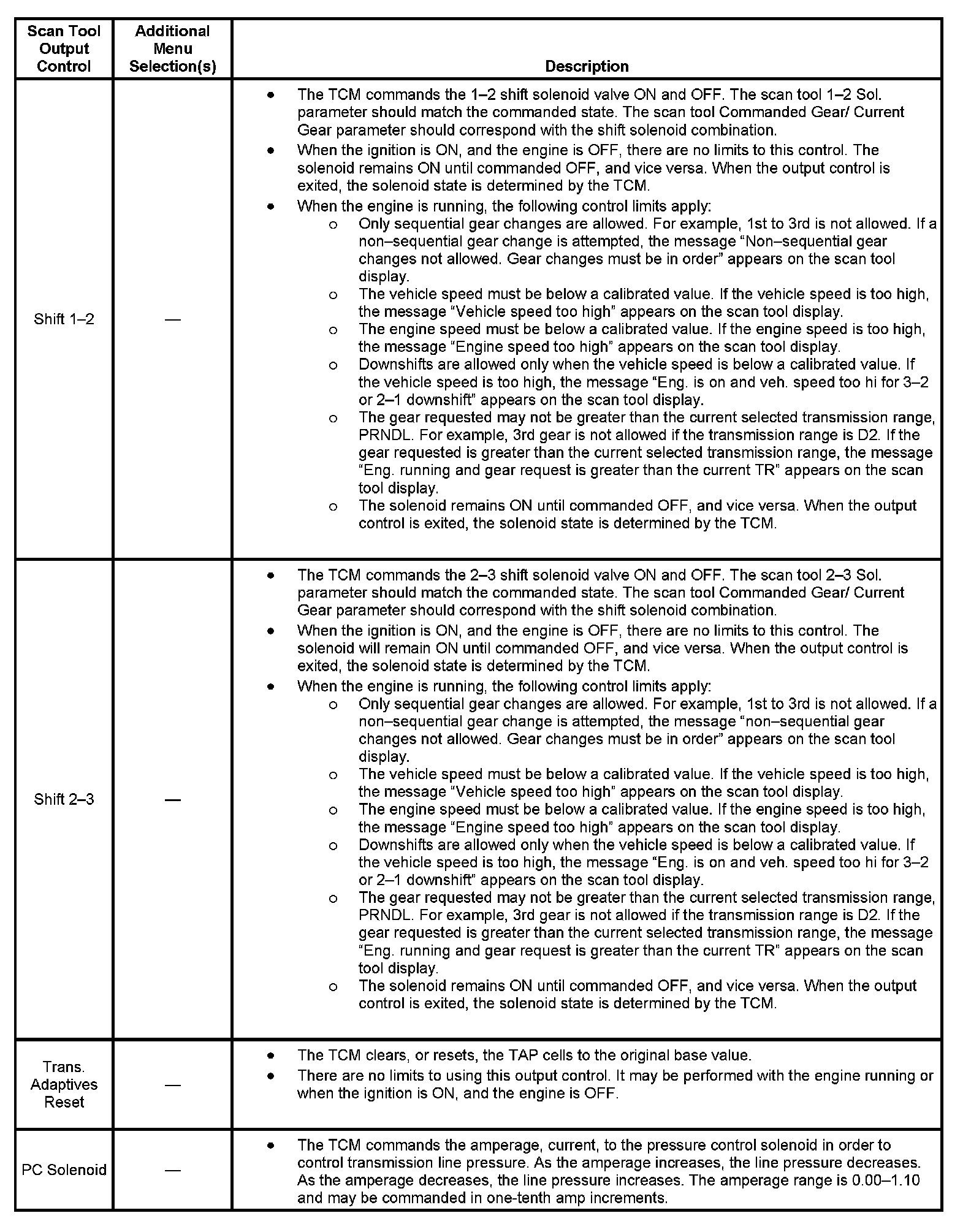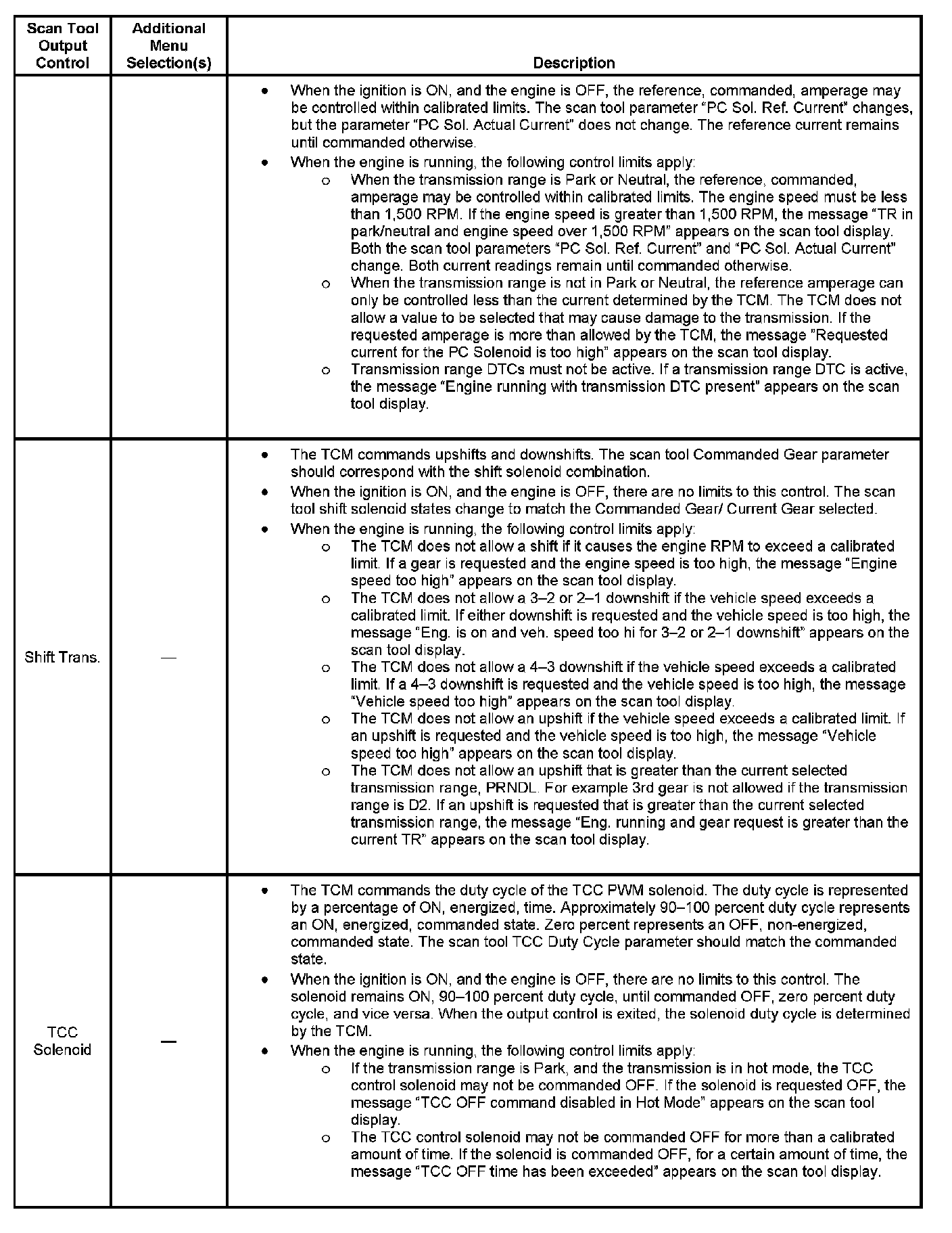 Scan Tool Output Controls