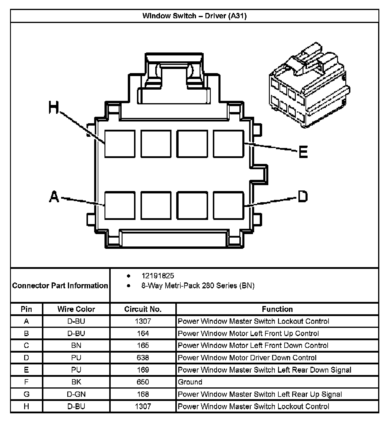 Window Switch - Driver (With RPO Code A31):