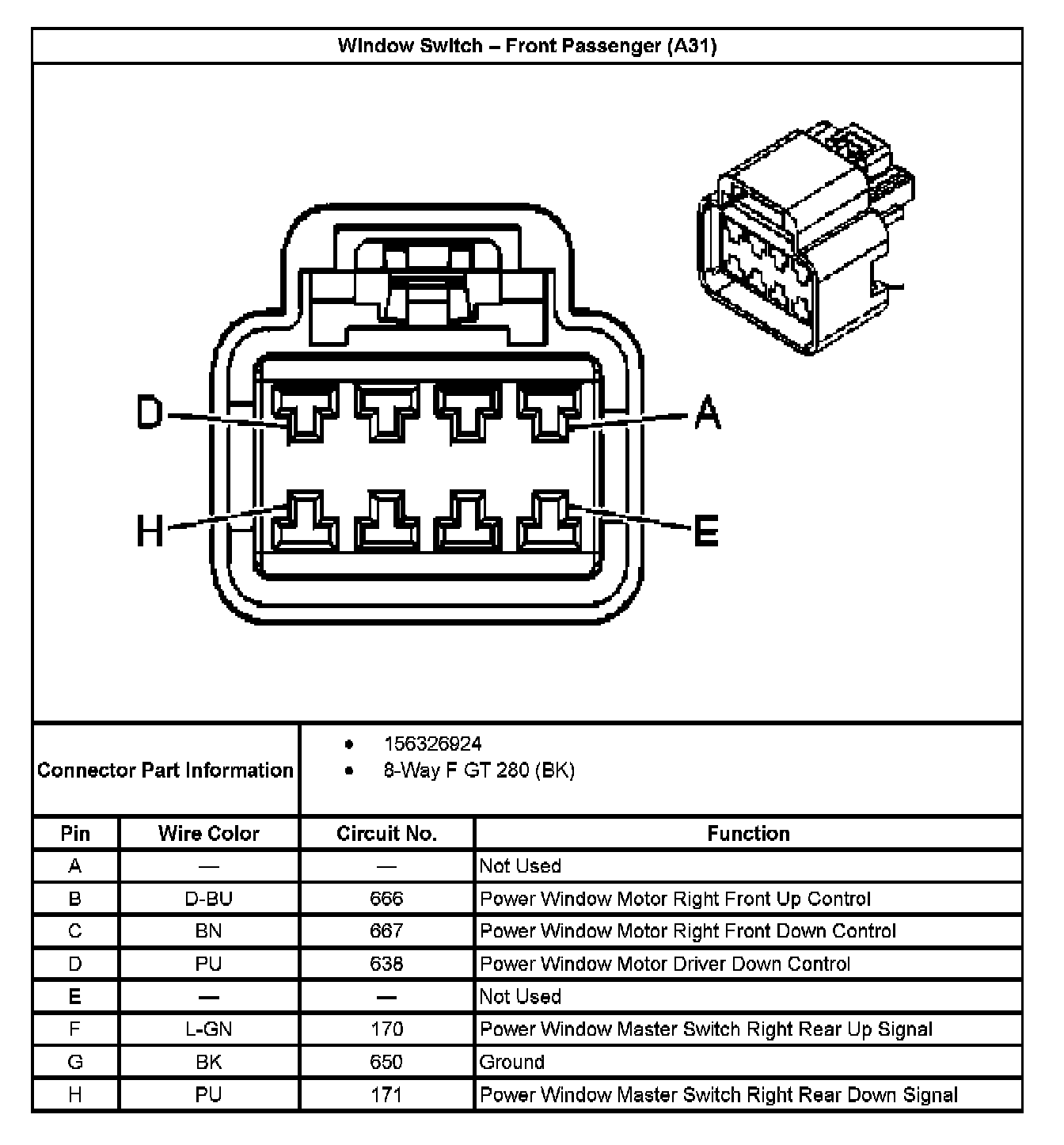 Window Switch - Front Passenger (With RPO Code A31):